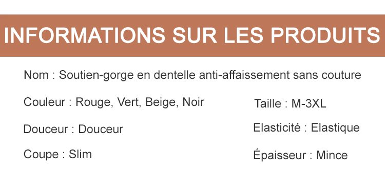 Soutien-gorge push-up sans couture en dentelle anti-affaissement pour femme